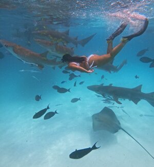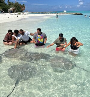 Partenza per escursione con gli squali nutrice, dove sarà possibile fare video, foto e prendere confidenza con queste magnifiche creature. Partenza per l'isola di Fulidhoo, per osservare le razze marine. Pranzo su una lingua di sabbia deserta, relax e ripartenza per Maafushi.