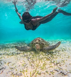 Partenza per escursione con due punti snorkeling sulla barriera corallina, ricerca di delfini e tartarughe (incrociando le dita) e pranzo su una lingua di sabbia deserta.